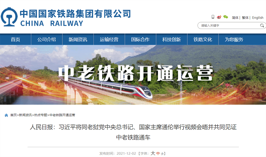△中老鐵路于12月3日正式通車