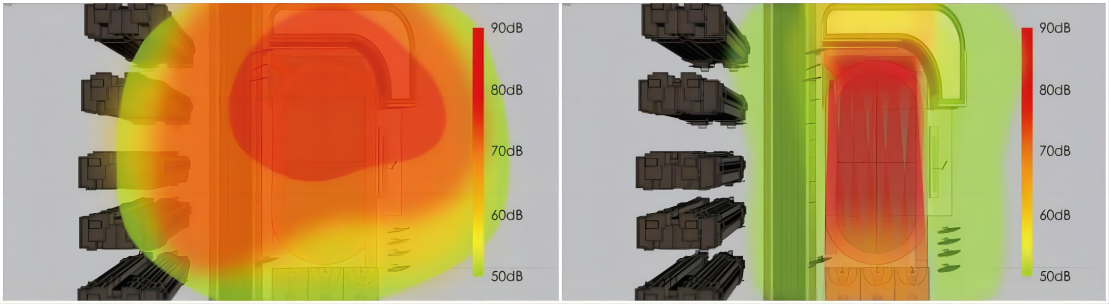 定向聲廣播系統核心技術是定向聲技術,能夠讓學校操場廣播的聲音集中在操場范圍內傳播,超出操場范圍,聲壓級大大降低,降至環保值以下,符合環境噪聲標準,也就對臨近的居民樓沒有噪聲干擾的困擾了。