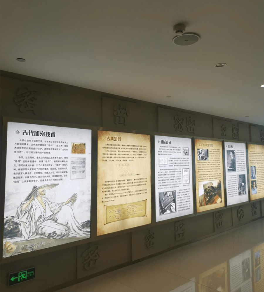 展館2018年10月正式啟用,面積約600平方米,是一個展示密碼文化、普及密碼知識及介紹商密產(chǎn)品的主題展示廳。展示內(nèi)容分五部分:密碼文化及知識普及區(qū)、密碼的歷史及發(fā)展歷程區(qū)、密碼產(chǎn)品應(yīng)用行業(yè)介紹與閱讀體驗區(qū)、密碼產(chǎn)品展示區(qū)和密碼技術(shù)培訓(xùn)區(qū)。